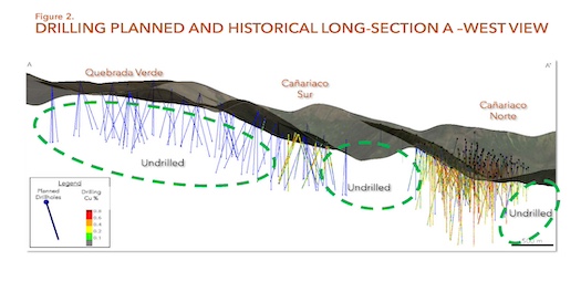 - La perforación se centrará en el poco explorado depósito de pórfido de cobre y oro de Cañariaco Sur, el objetivo de pórfido de Quebrada Verde no perforado y la mejora del depósito de Cañariaco Norte con perforación de relleno y pruebas de varias zonas de alta ley identificadas recientemente y abiertas a profundidad;