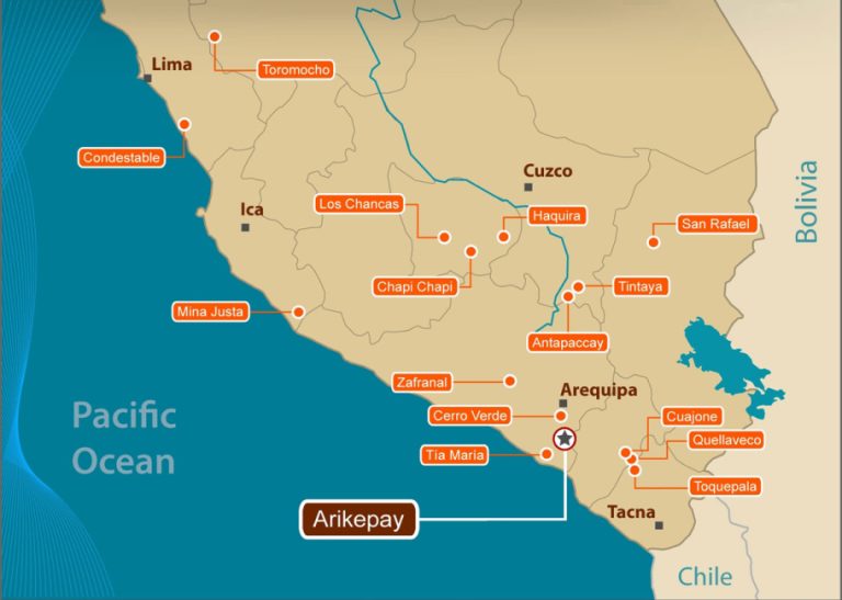 The Arikepay property, 100% owned by Alta Copper, is located 40 km from the Pacific Ocean in the coastal region of the Arequipa department in southern Peru. It covers an area of 1,800 hectares (ha) at an average elevation of 1,200 metres (m) above sea level. The property is located within one of the most active mining regions of Peru.