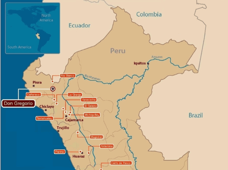 Alta Copper acquired the Don Gregorio from the Peruvian government in a competitive auction in 2008. Don Gregorio covers a mineralized (copper-gold) porphyry system, that occurs within the same geological trend as Yanacocha, Cerro Corona and Cañariaco.